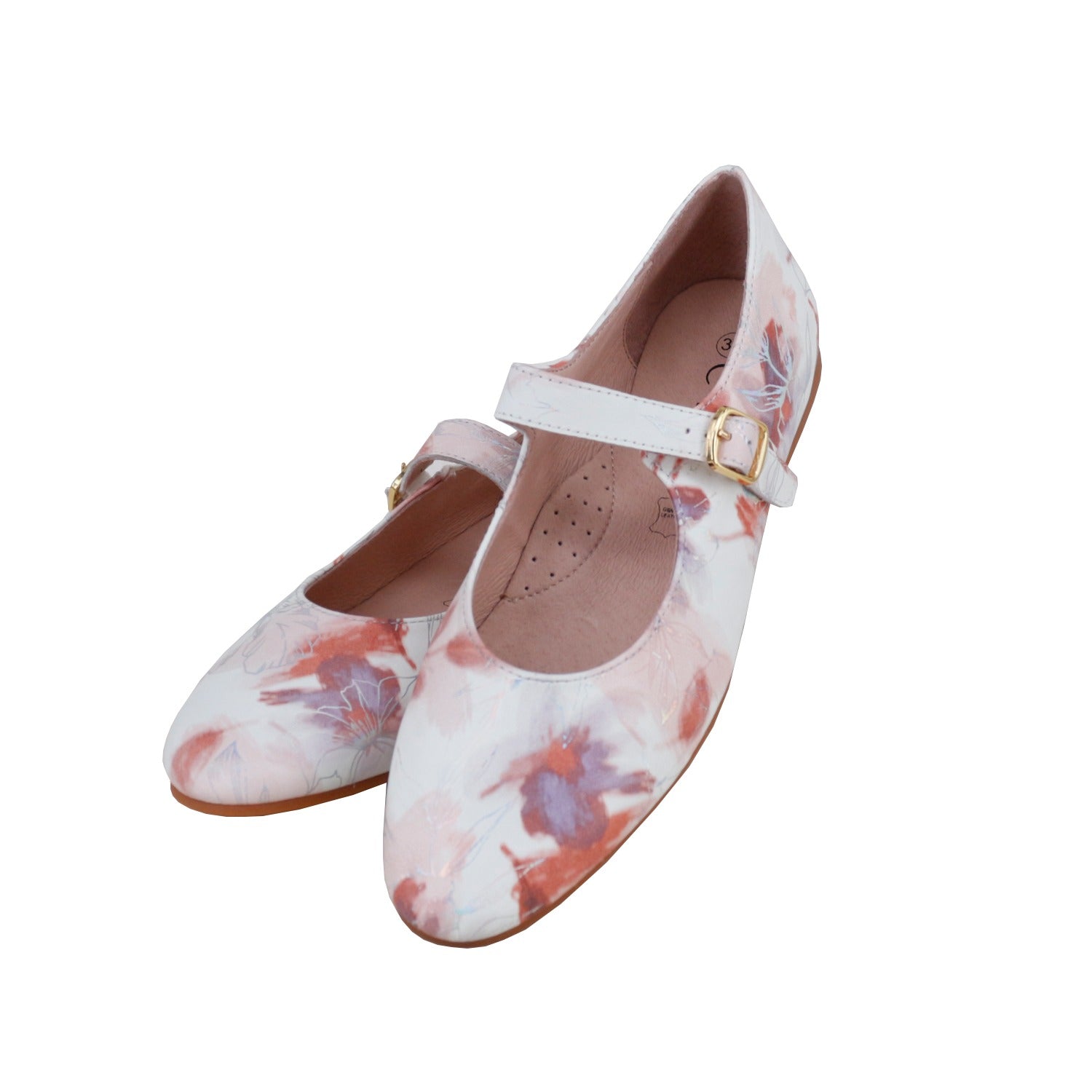 # 1173 ADORA MARY JANE Step into whimsy with the ADORA Mary Jane, where timeless silhouette meets cheerful florals. This charming style features a delicate flower pattern that brings personality to every step—perfect for dancers who want to express themselves beyond the studio. The classic Mary Jane strap keeps your foot secure while the graceful design celebrates movement and joy. A playful twist on ballet tradition.